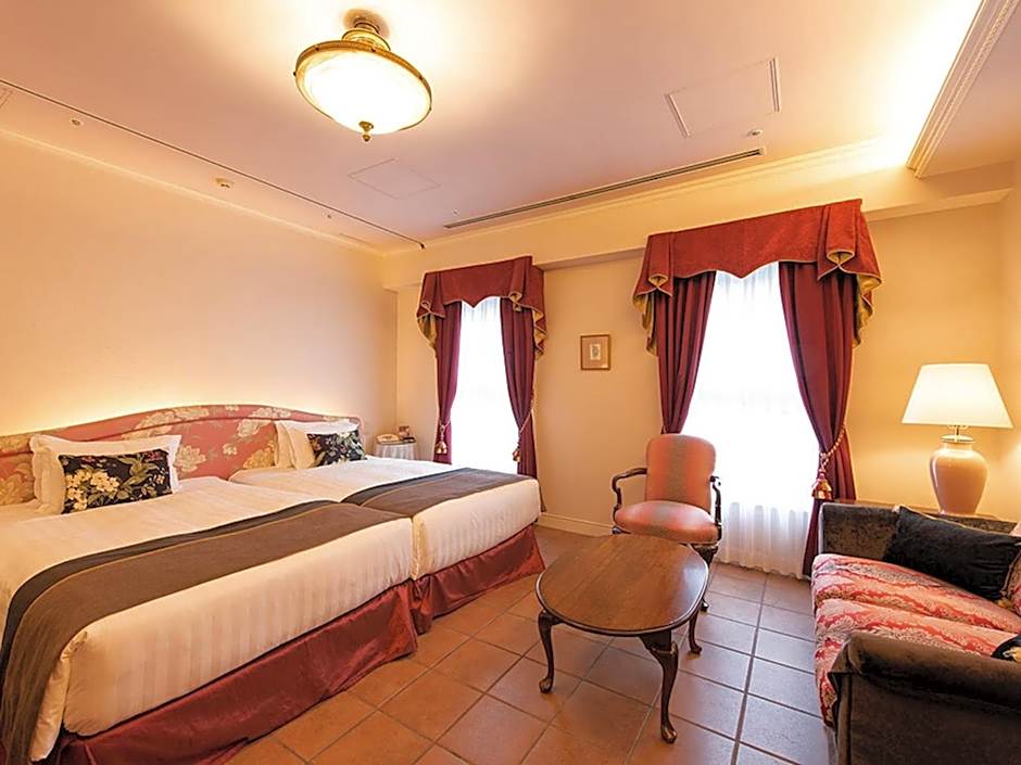 Each with unique décor and pastel colors, this very spacious suite comes with a fridge, a telephone and an electric kettle. The private bathroom features a bath tub and free toiletries.